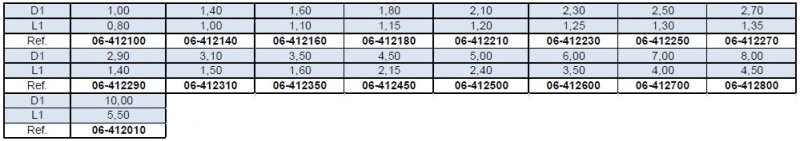 Burs 1,00 mm up to 5,00 packed per 6 in a plastic box.