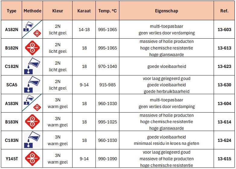 Legering geel handwerk 9-14Kt Y144W per gram - einde reeks€ 0,60